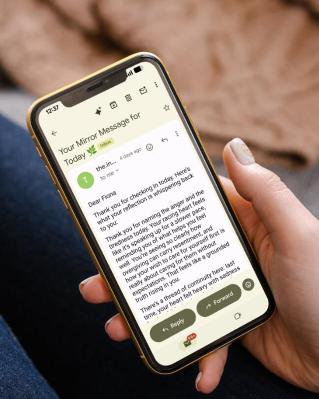 A Mirror Message is a short, personalised reflection sent to you and written in response to what you share. It doesn’t give advice or tell you what to do.